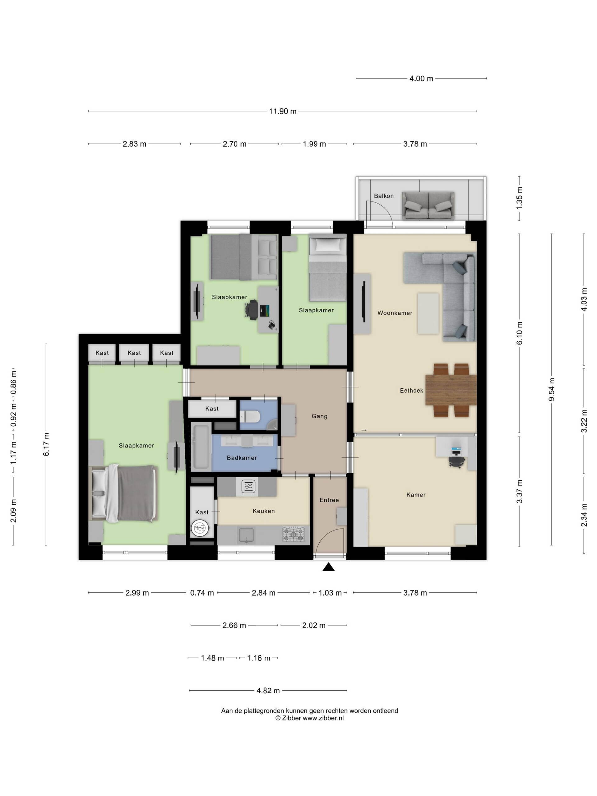 Het appartement beschikt over drie slaapkamers van goed formaat. De