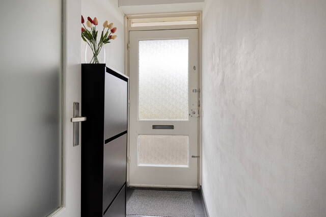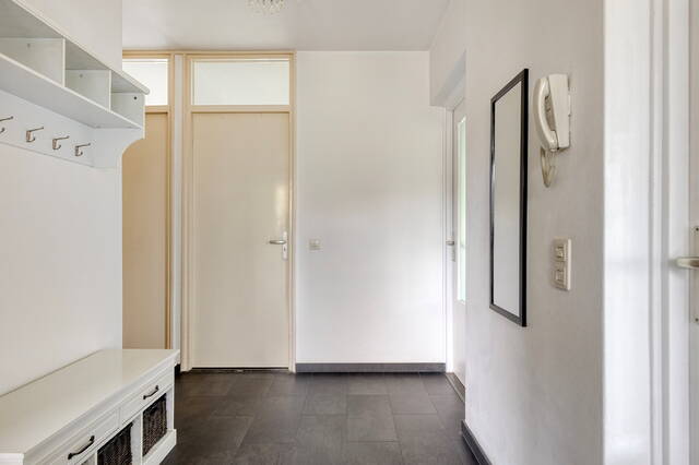 Via de overdekte galerij kom je bij de entree van het appartement. Binnen tref je een