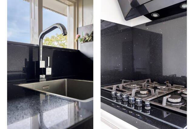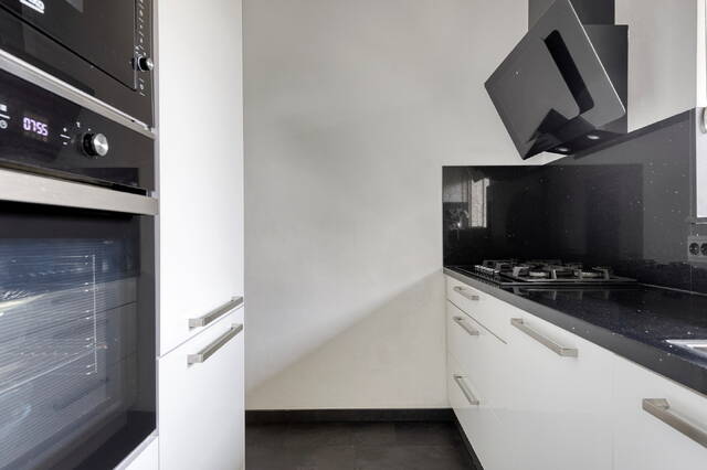 De moderne keuken is praktisch én stijlvol ingericht, met diverse inbouwapparaten zoals