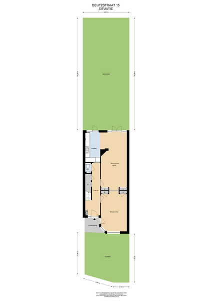 Via de keuken en vanuit de achterkamer via openslaande tuindeuren kunt u naar de zonnige achtertuin. De achtertuin mag een opknapbeurt hebben . De royale achtertuin meet maar liefst ca 60 m², ligt heerlijk beschut en is op het zuiden gericht.