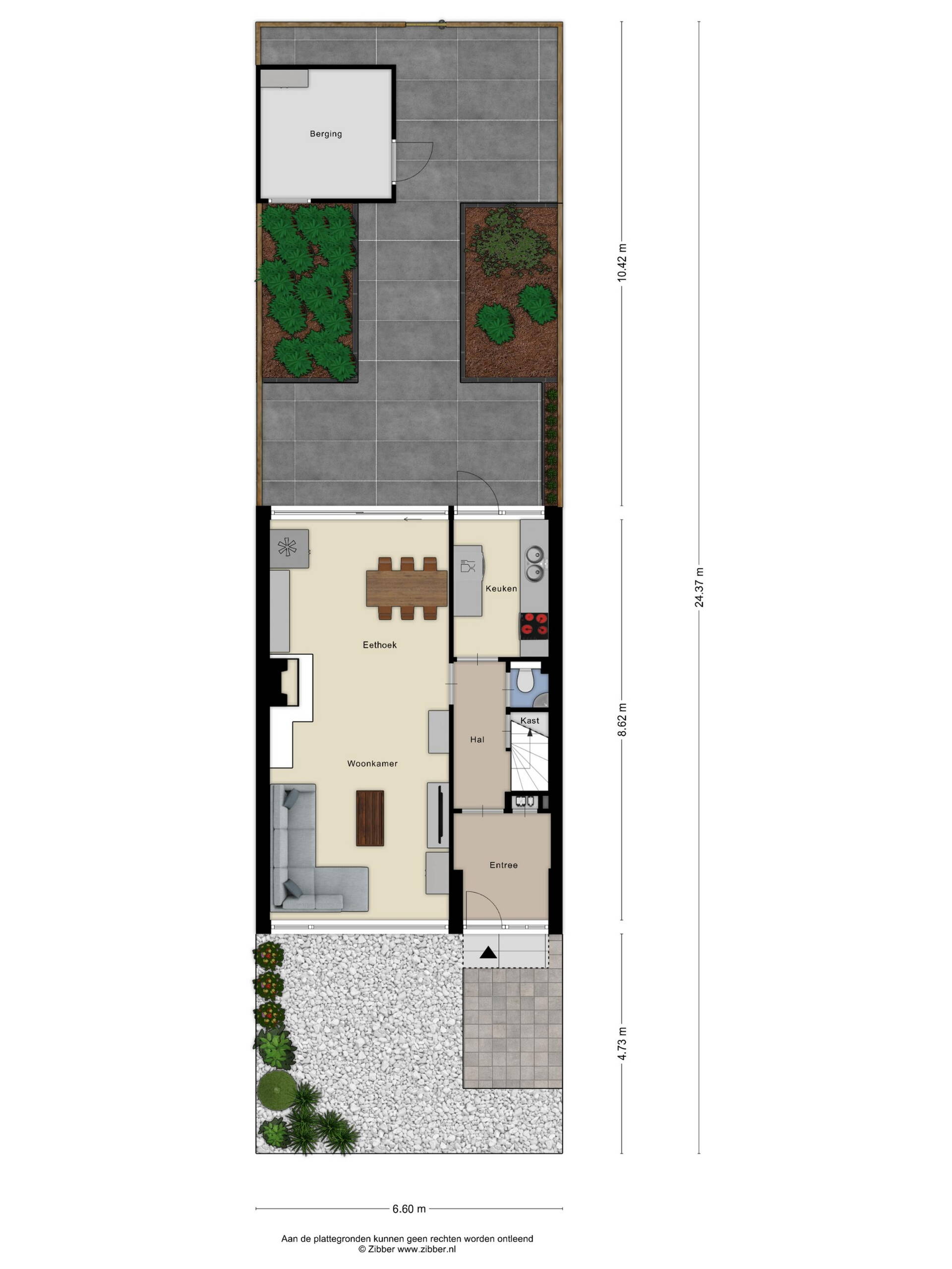 De ruime achtertuin op het noorden biedt zowel zon- als schaduwplekken en is verzorgd aangelegd met groen en terrassen. Achter in de tuin staat een stenen berging met elektra ideaal voor fietsen, gereedschap of hobby’s. De voortuin is eveneens verzorgd en geeft de woning een vriendelijke uitstraling.