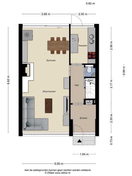 Via de voortuin bereik je de entree met hal, garderobe, trapopgang en toilet. De ruime woonkamer is licht en sfeervol en biedt plek voor een comfortabele zithoek en een grote eethoek. Aan de achterzijde bevindt zich de keuken, praktisch ingedeeld en voorzien van de nodige werk- en bergruimte. Vanuit de woonkamer kijk je fraai uit op de ruime achtertuin.