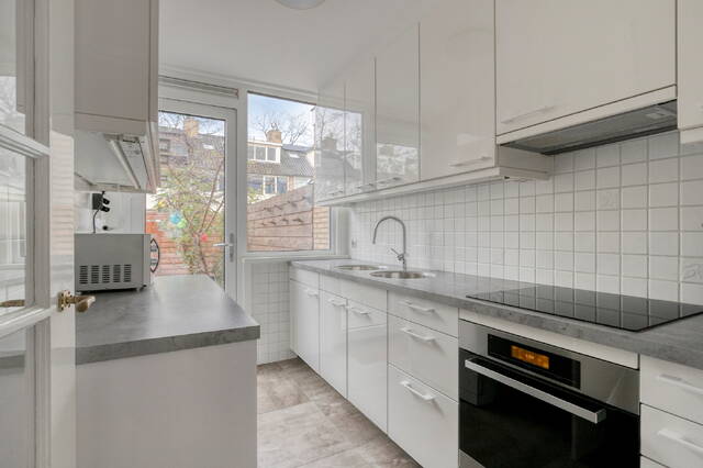 De slaapkamers zijn verdeeld over twee woonlagen en bieden volop licht en ruimte. De diepe achtertuin op het noorden is verzorgd aangelegd en beschikt over een stenen berging met elektra.