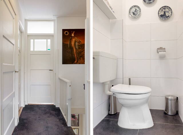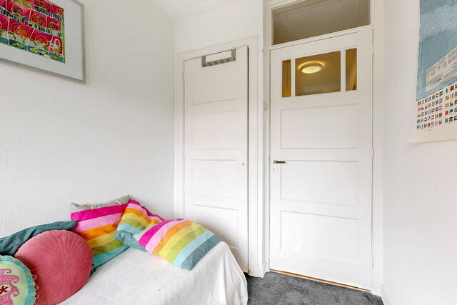 On the first floor there are two spacious bedrooms, a third (sleeping/working) room and the first bathroom. The bedroom at the rear has a closet and patio doors to a spacious balcony with a view over the garden. The bedroom at the front has a charming bay window with a wide windowsill. The luxurious bathroom has daylight and has a spacious walk-in shower, washbasin with mirror, design radiator and built-in wardrobe. The second toilet is located separately on the landing.
