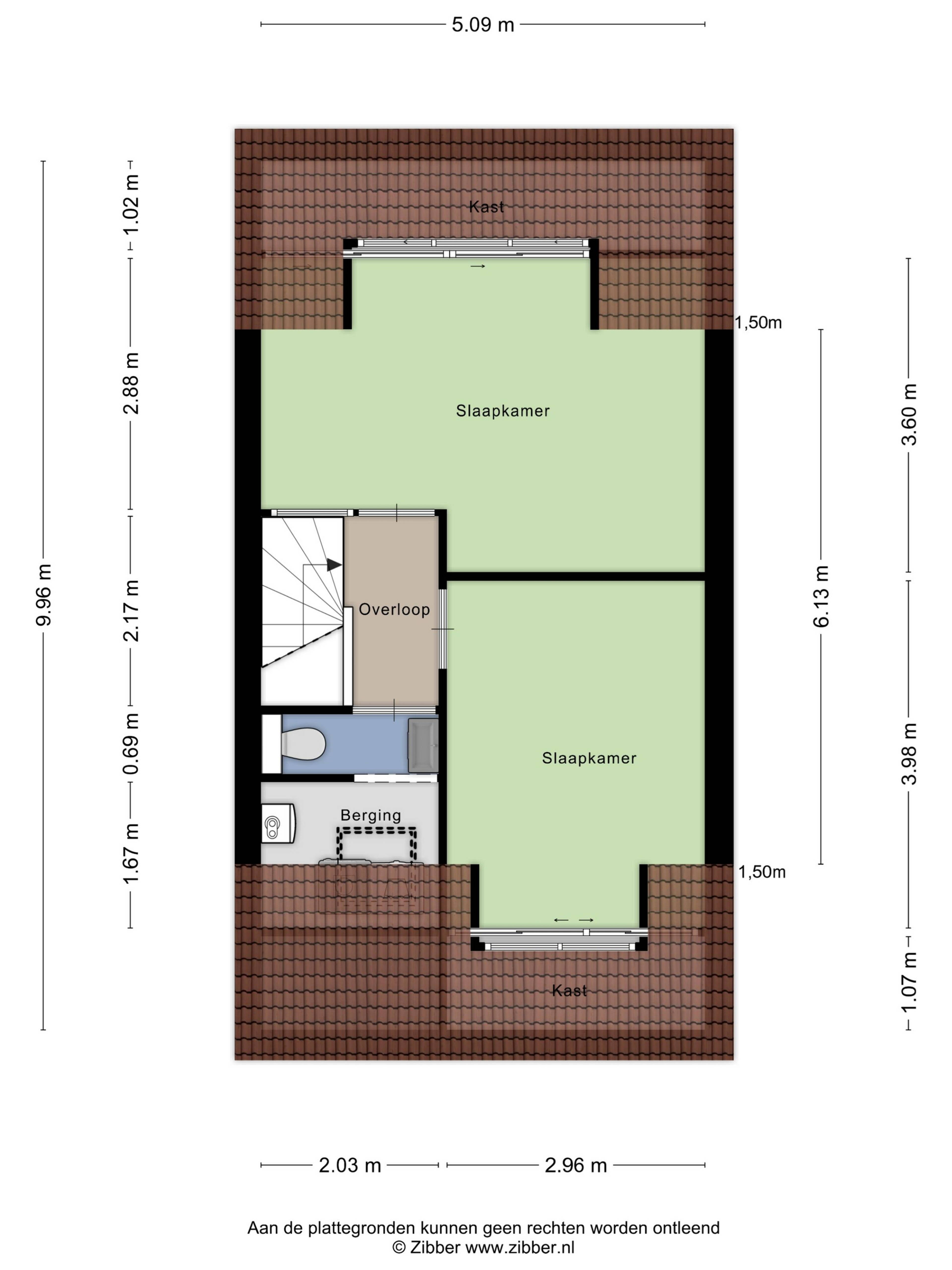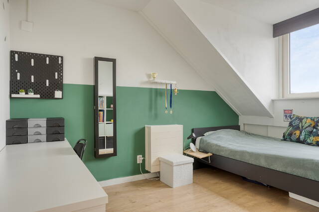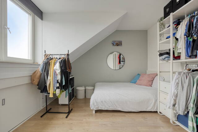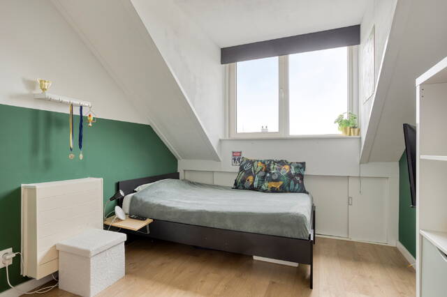 De tweede verdieping beschikt over twee ruime slaapkamers. Beide kamers zijn voorzien van een dakkapel. Dankzij de dakkapellen valt er veel daglicht binnen, waardoor deze kamers ruimte en licht uitstralen. In beide kamers is ook veel opbergruimte te vinden doordat slim gebruik is gemaakt van de schuine wand onder de ramen.