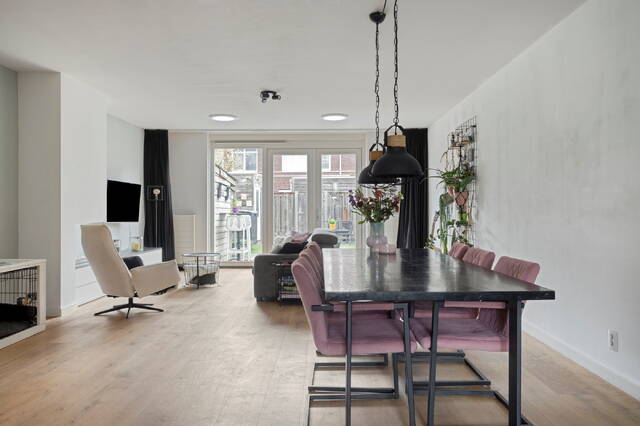 Bij binnenkomst voel je meteen de ruimtelijke sfeer van deze woning. De hal is licht en je vindt er een net en ruim toilet, maar ook de moderne meterkast. De uitbouw aan de achterzijde is voorzien van light tubes, waardoor er extra daglicht naar binnen valt en de ruimte nog meer open en uitnodigend aanvoelt. De woonkamer straalt comfort en stijl uit, met een houten vloer die in 2024 opnieuw in de lak is gezet, strak afgewerkte wanden en een sfeervolle haard. Middels openslaande deuren kom je in de zonnige achtertuin.