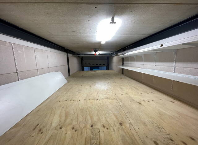 Opslagruimte circa 9 mtr. lang, 3.10 mtr. breed en 3.70 mtr. hoog.