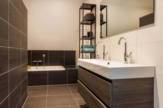 Via de vaste trap komt u op de overloop van de eerste verdieping. Hier heeft u toegang tot drie ruime slaapkamers, een toilet, de royale moderne badkamer en een aparte wasruimte met opstelling voor wasmachine en droger. De ruime slaapkamer aan de achterzijde is voorzien van een inbouwkast en een airco. De twee slaapkamers aan de voorzijde zijn ruim opgezet en hebben veel lichtinval. De royale badkamer beschikt over een ruime inloopdouche, een ligbad, een dubbel wastafelmeubel en een handdoekenradiator.