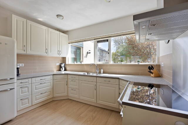 Bij binnenkomst treft u in de ruime hal een toilet met fonteintje, evenals een moderne meterkast en voldoende plek voor een garderobe. De woning beschikt over een royale en lichte woonkamer met open keuken, waar moeiteloos ruimte is voor een comfortabele zithoek en een grote eettafel. Dankzij de grote raampartijen geniet de ruimte van een prettige hoeveelheid daglicht. Ook vindt u hier een fijne trapkast. De verzorgde keuken ligt aan de voorzijde van de woning en is praktisch ingericht. Er is volop werk- en bergruimte aanwezig, en de keuken is voorzien van een groot inductiefornuis, een vaatwasser en een losse SMEG koelvriescombinatie.